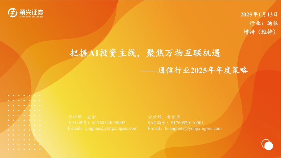 【甬兴证券】【20250113】通信行业2025年年度策略:把握AI投资主线,聚焦万物互联机遇-27页