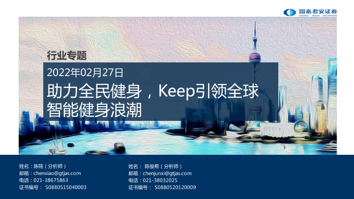 【国泰君安证券】【20220227】传媒行业专题:助力全民健身,Keep引领全球智能健身浪潮-22页