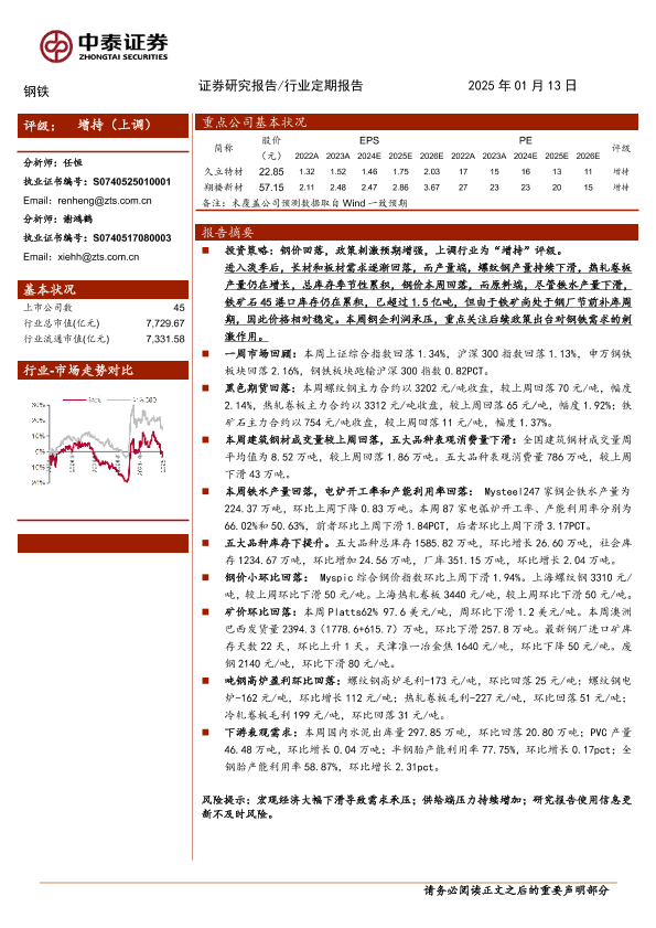 【中泰证券】【20250113】钢铁行业:铁矿库存持续累积,原料补库临近尾声-18页