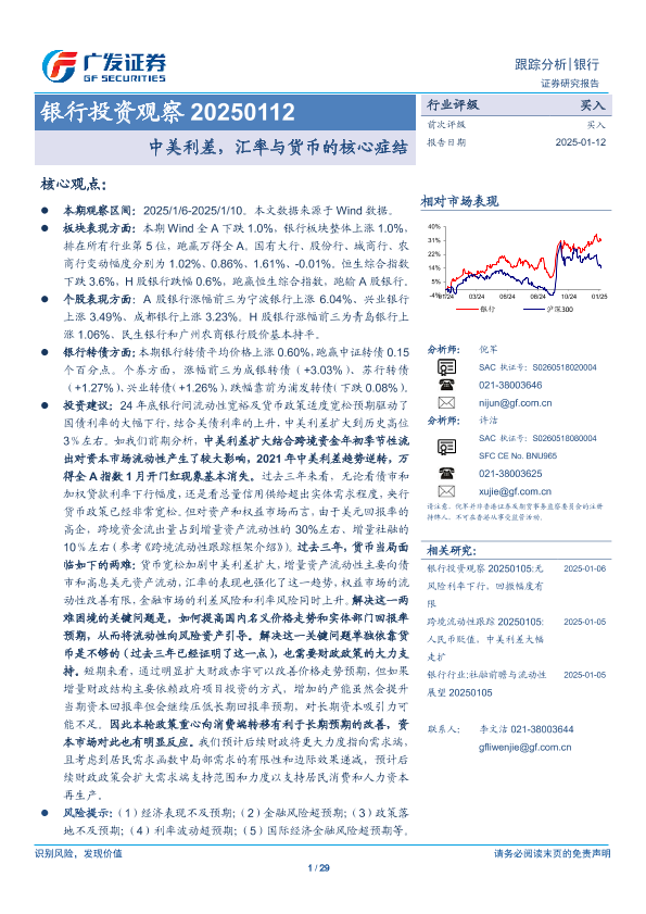 【广发证券】【20250112】银行业投资观察:中美利差,汇率与货币的核心症结-29页