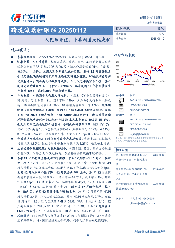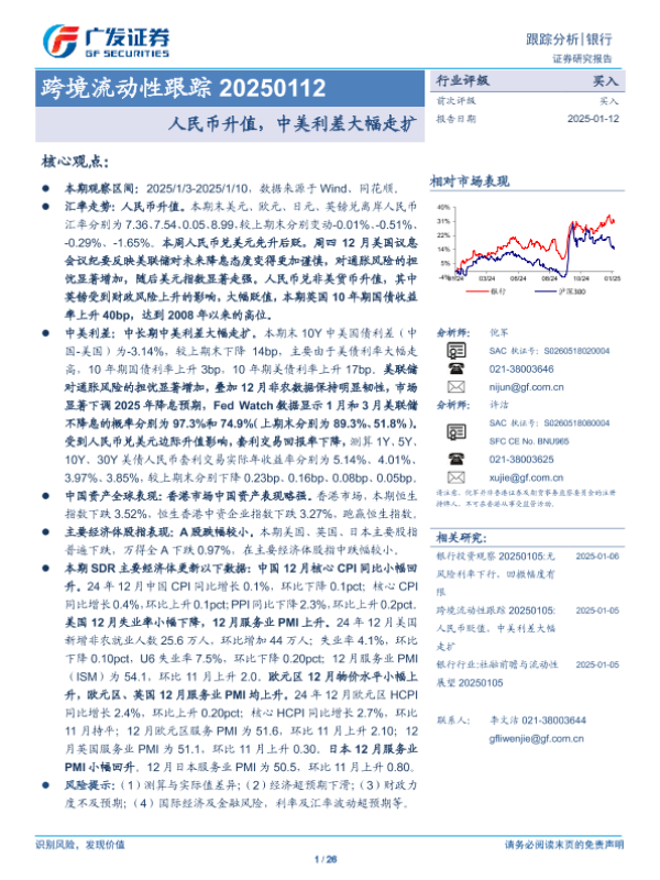 【广发证券】【20250112】银行业跨境流动性跟踪:人民币升值,中美利差大幅走扩-26页