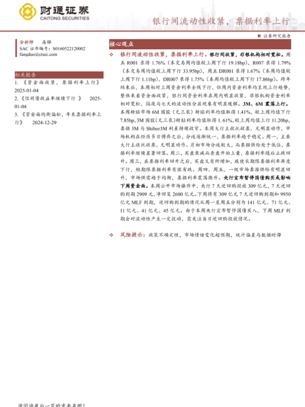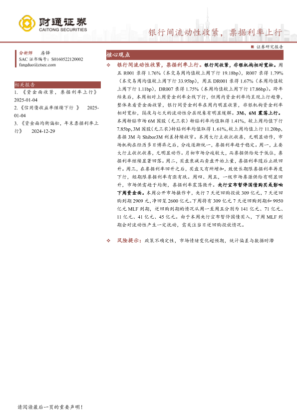 【财通证券】【20250112】银行间流动性收紧,票据利率上行-12页