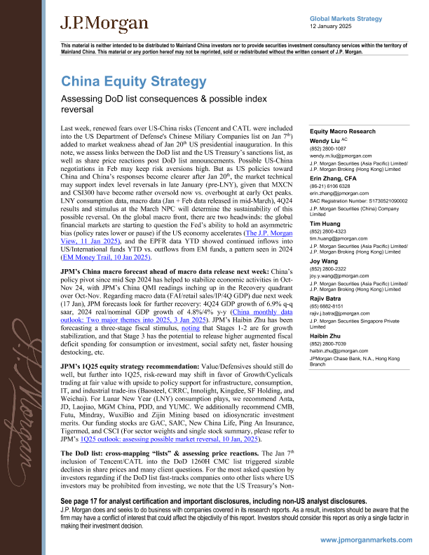 【J.P. Morgan】【20250112】gan-China Equity Strategy Assessing DoD list consequences & possible index reversal-23页
