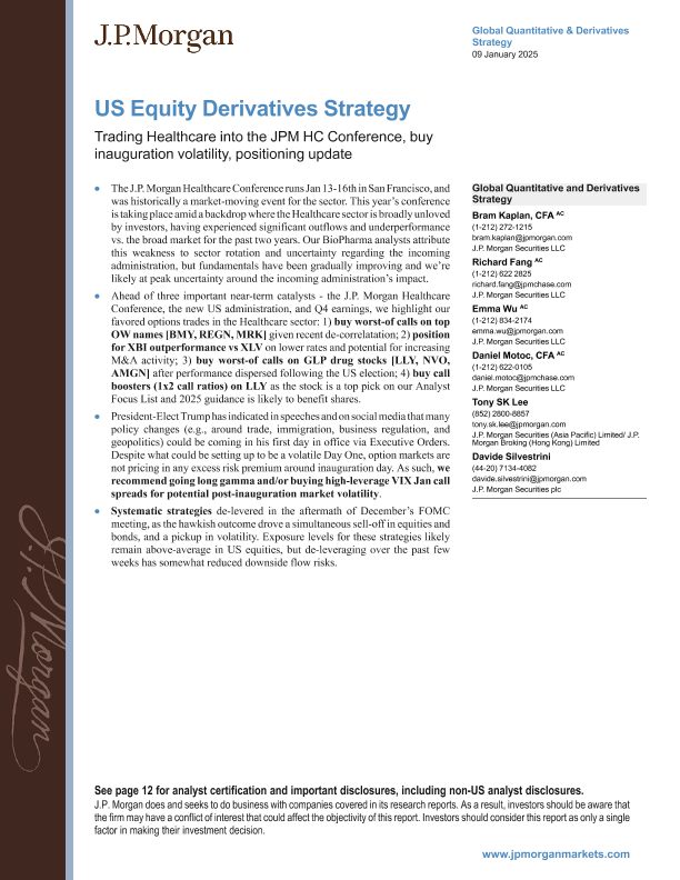【J.P. Morgan】【20250109】US Equity Derivatives Strategy Trading Healthcare into the JPM HC Conference, buy inauguration volatility, positioning update-17页