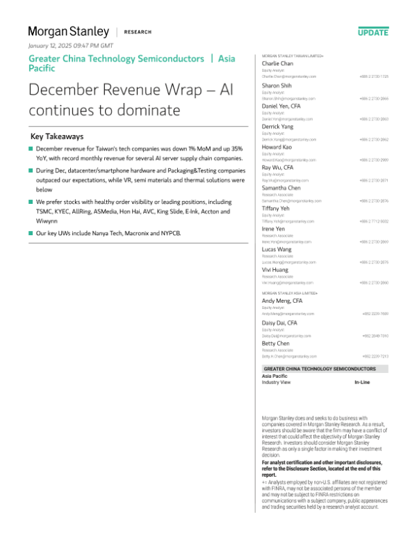 【Morgan Stanley】【202412】Greater China Technology Semiconductors December Revenue Wrap – AI continues to dominate-7页