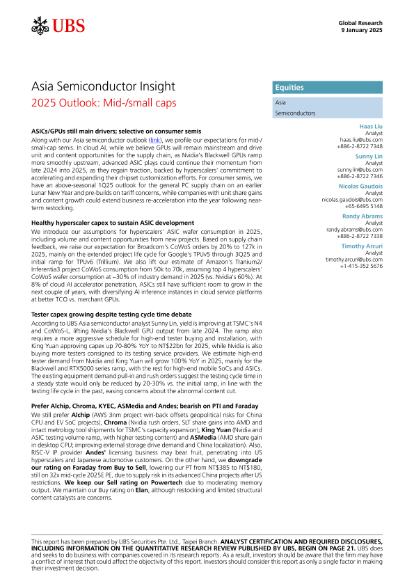 【UBS Securities Pte. Ltd.】【20250109】Asia Semiconductor Insight 2025 Outlook Mid-/small caps-29页