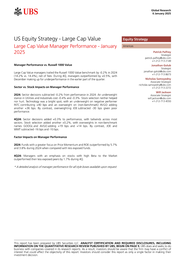 【UBS Securities LLC】【20250106】US Equity Strategy- Large Cap Value-13页