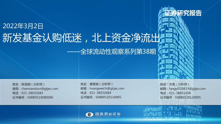 【国泰君安证券】【20220302】全球流动性观察系列第38期:新发基金认购低迷,北上资金净流出-52页
