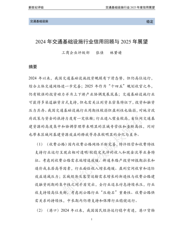 【新世纪评级】【2024】2024年交通基础设施行业信用回顾与2025年展望-80页
