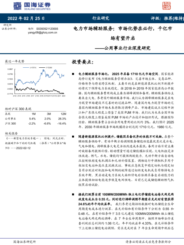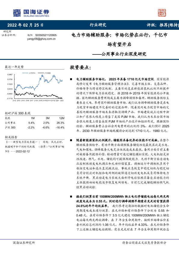 【国海证券】【20220225】公用事业行业深度研究:电力市场辅助服务,市场化势在必行,千亿市场有望开启-41页