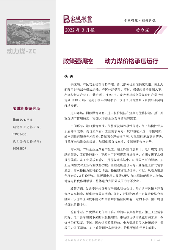 【宝城期货】【20220228】动力煤月报:政策强调控,动力煤价格承压运行-23页