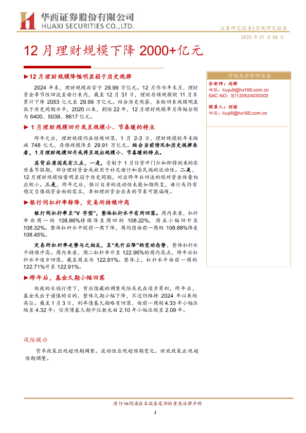 【华西证券】【20250106】12月理财规模下降2000+亿元-15页