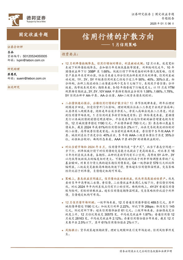 【德邦证券】【20250106】1月信用策略:信用行情的扩散方向-13页