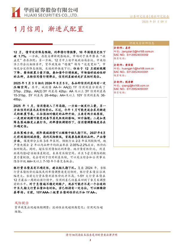 【华西证券】【20250109】1月信用,渐进式配置-22页