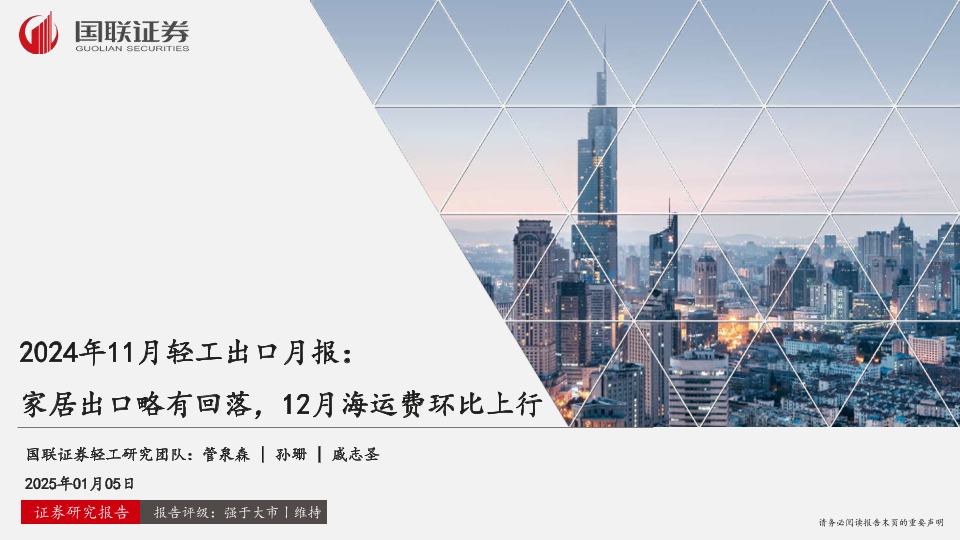 【国联证券】【20250105】2024年11月轻工行业出口月报:家居出口略有回落,12月海运费环比上行-28页