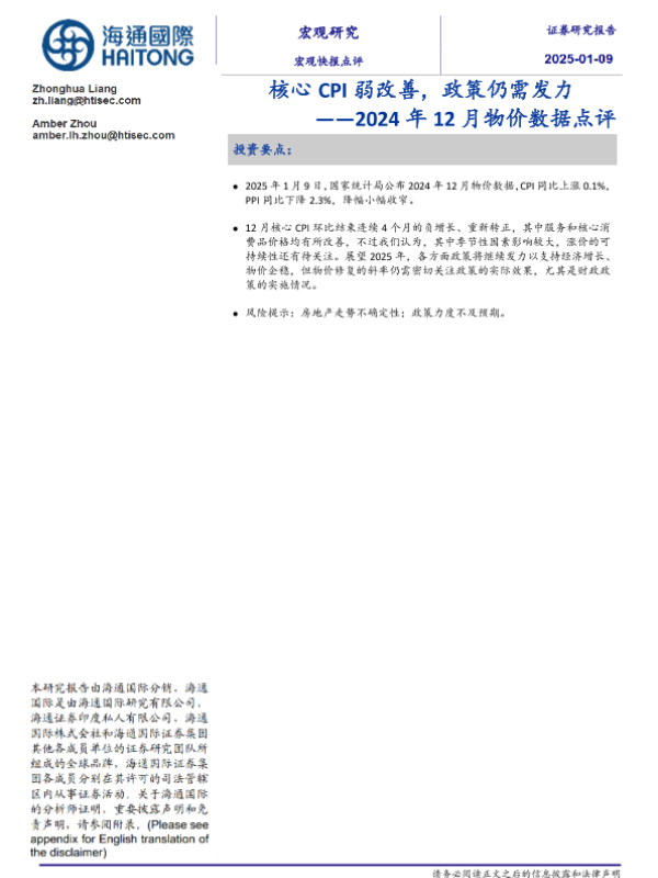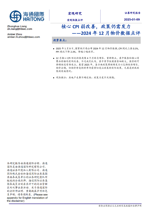 【海通国际】【20250109】2024年12月物价数据点评:核心CPI弱改善,政策仍需发力-12页