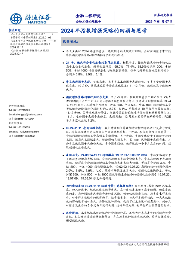 【海通证券】【20250107】2024年指数增强策略的回顾与思考-16页