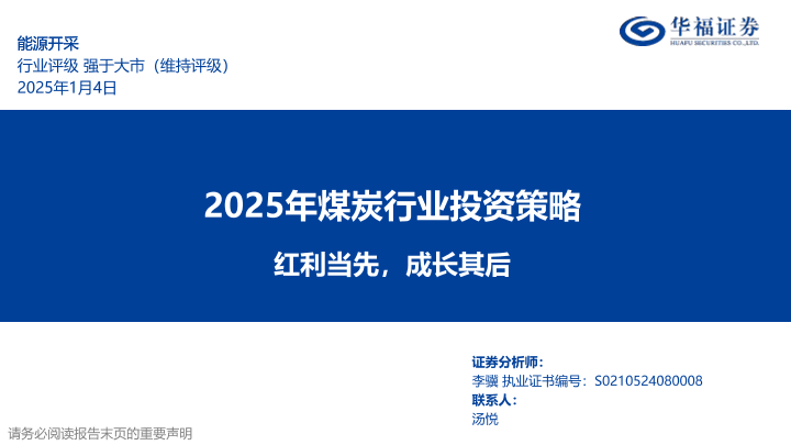 【华福证券】【20250104】2025年煤炭行业投资策略:红利当先,成长其后-33页