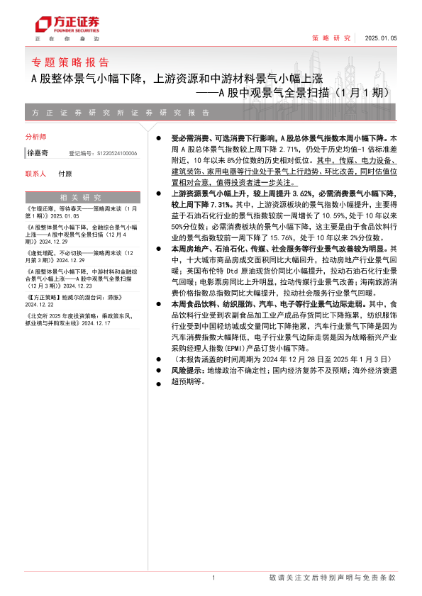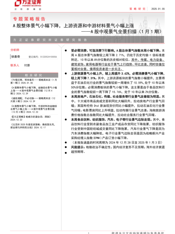 【方正证券】【20250105】A股中观景气全景扫描(1月1期)-25页