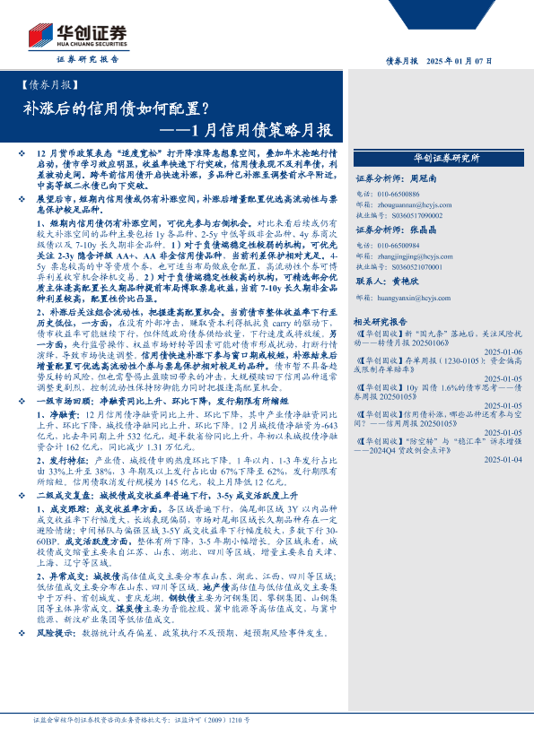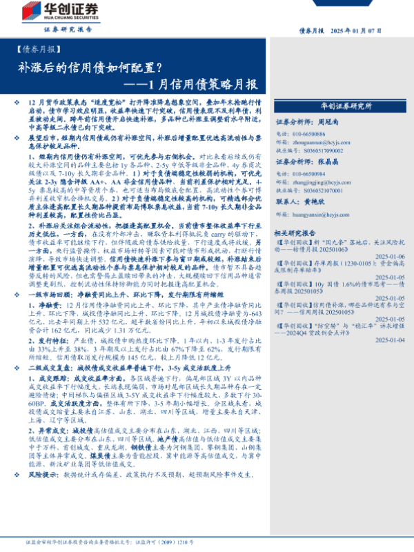 【华创证券】【20250107】【债券月报】1月信用债策略月报:补涨后的信用债如何配置?-27页