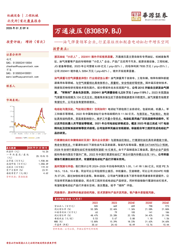 【华源证券】【20250109】万通液压(830839)油气弹簧领军企业,行星滚柱丝杠配套电动缸打开增长空间-39页