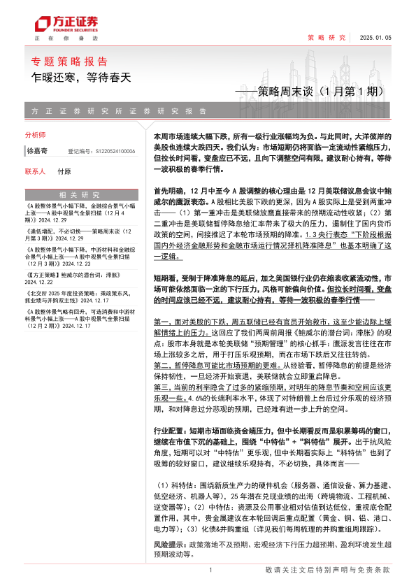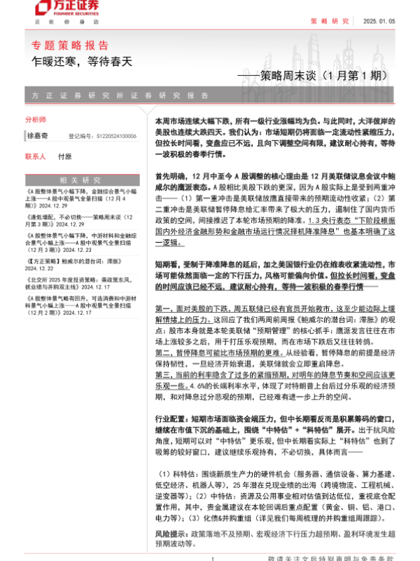 【方正证券】【20250105】专题策略报告-策略周末谈(1月第1期):乍暖还寒,等待春天-10页