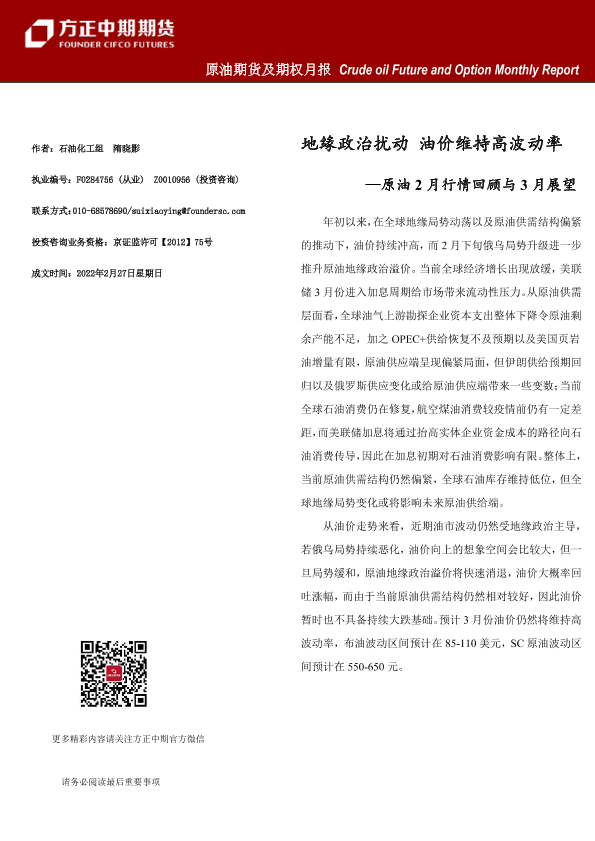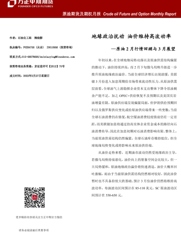 【方正中期期货】【20220227】原油期货及期权月报-23页