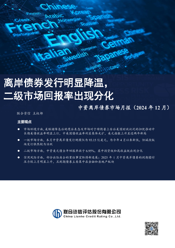 【联合资信】【202412】中资离岸债券市场月报(2024年12月):离岸债券发行明显回落,二级市场回报率出现分化-15页