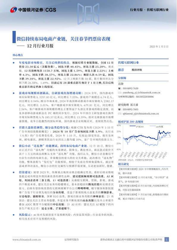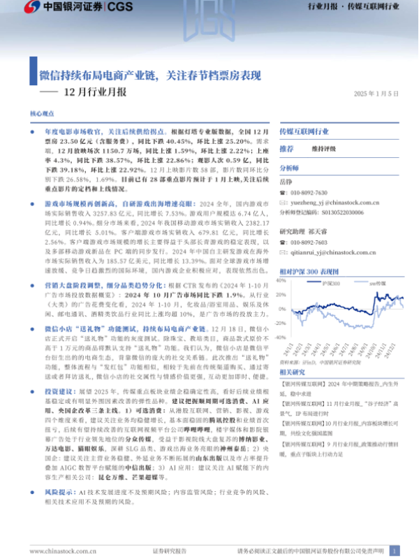 【银河证券】【20250105】传媒互联网行业12月行业月报:微信持续布局电商产业链,关注春节档票房表现-29页