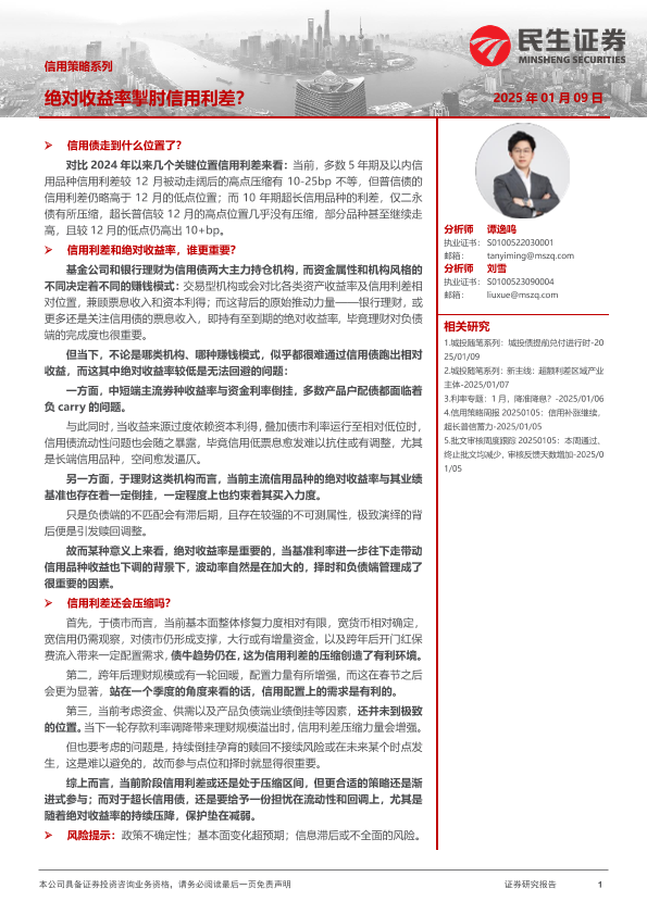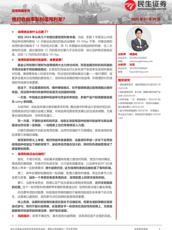 【民生证券】【20250109】信用策略系列:绝对收益率掣肘信用利差?-12页