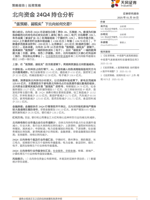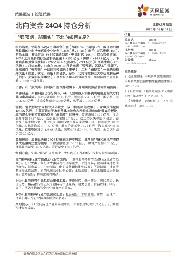 【天风证券】【20250109】北向资金24Q4持仓分析:“强预期、弱现实”下北向如何交易?-14页