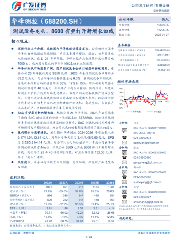 【广发证券】【20250107】华峰测控(688200)测试设备龙头,8600有望打开新增长曲线-24页