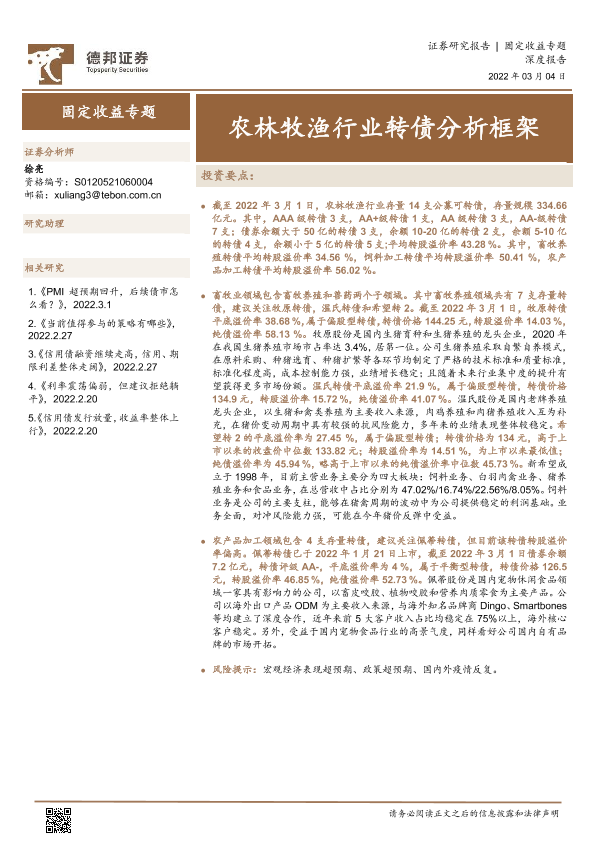 【德邦证券】【20220304】固定收益专题:农林牧渔行业转债分析框架-46页