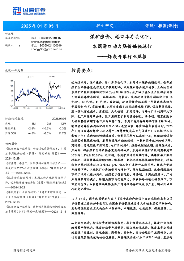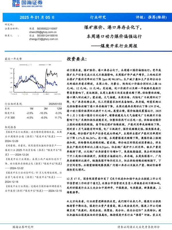 动力煤 港口库存 炼焦煤 煤价预测 煤炭行业