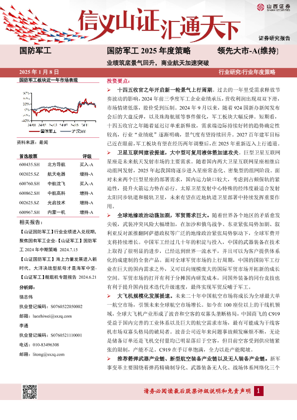 【山西证券】【20250108】国防军工行业2025年度策略:业绩筑底景气回升,商业航天加速突破-36页