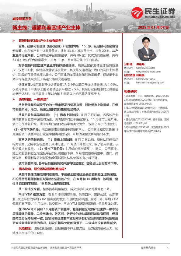 【民生证券】【20250107】城投随笔系列:新主线,超额利差区域产业主体-16页