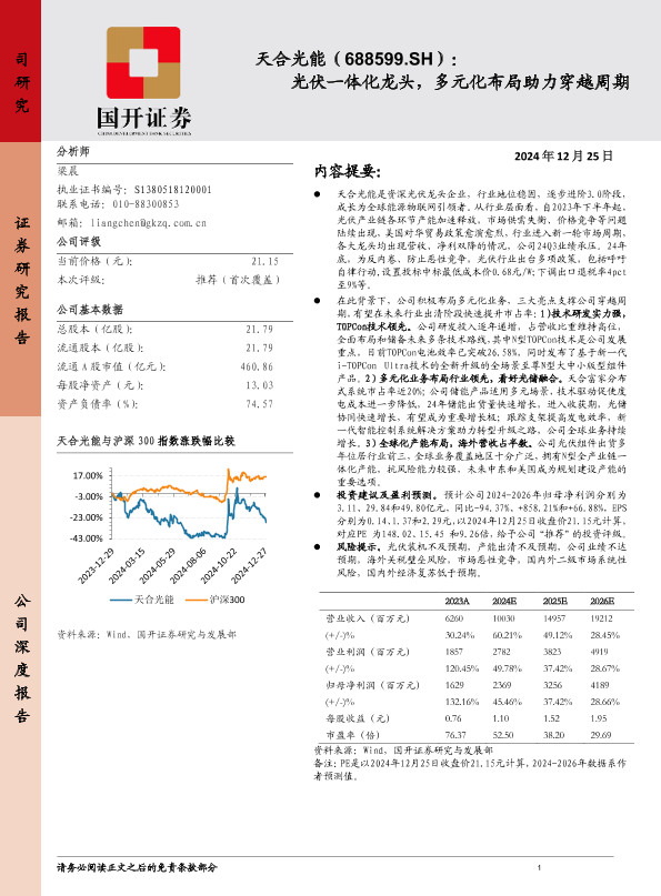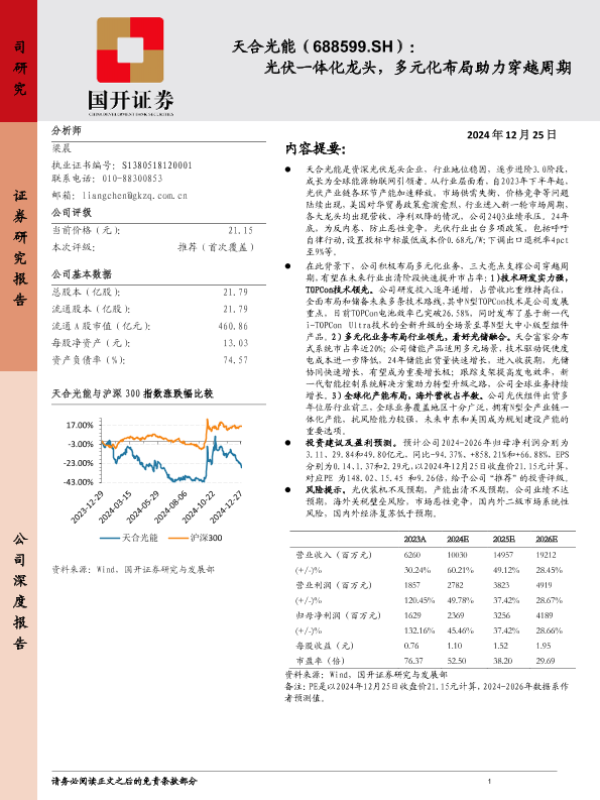 【国开证券】【20241225】天合光能(688599)光伏一体化龙头,多元化布局助力穿越周期-24页