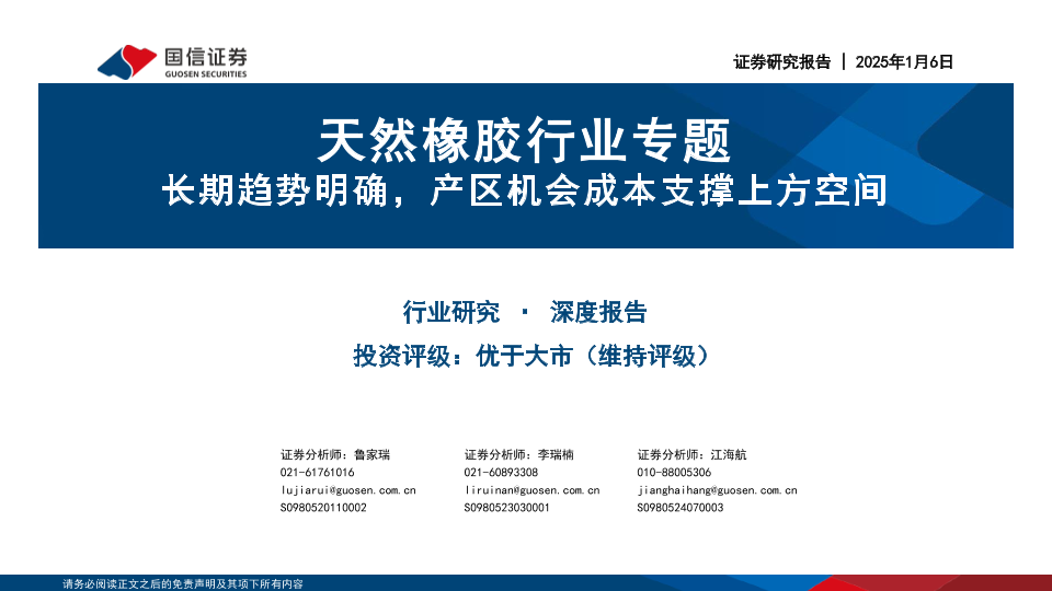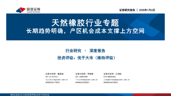 【国信证券】【20250106】天然橡胶行业专题:长期趋势明确,产区机会成本支撑上方空间-61页