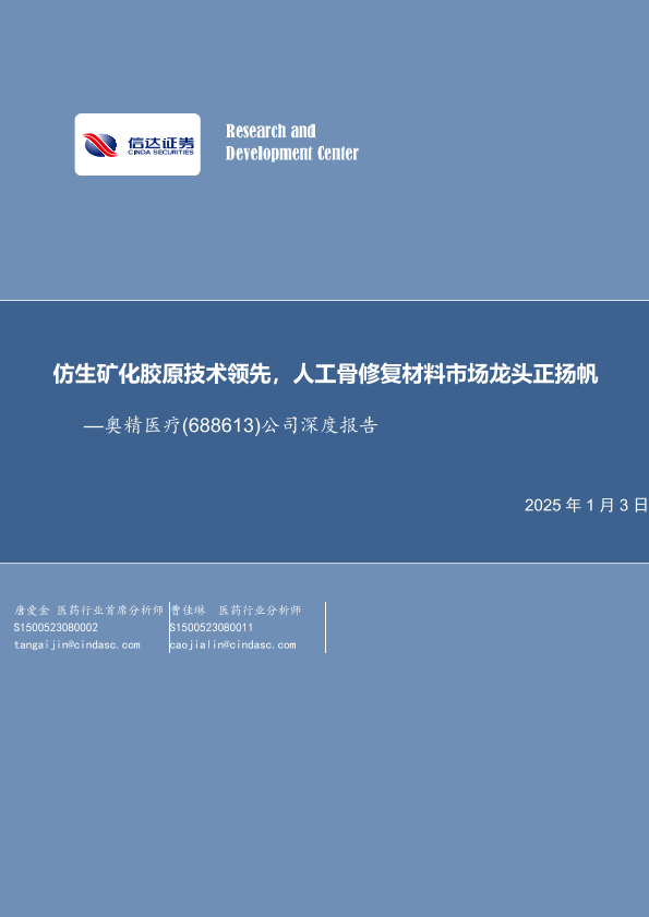 【信达证券】【20250103】奥精医疗(688613)公司深度报告:仿生矿化胶原技术领先,人工骨修复材料市场龙头正扬帆-37页