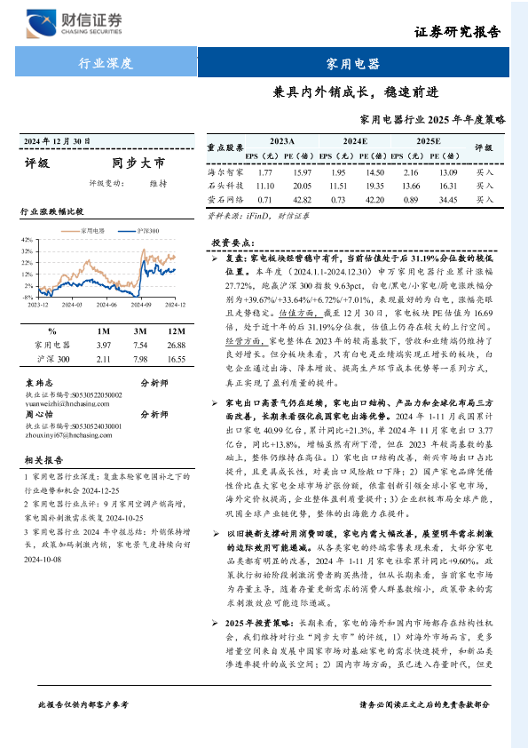 【财信证券】【20241230】家用电器行业2025年年度策略:兼具内外销成长,稳速前进-27页