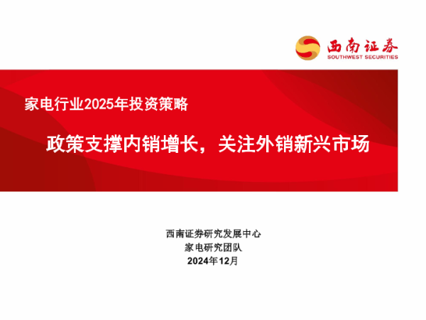 【西南证券】【202412】家电行业2025年投资策略:政策支撑内销增长,关注外销新兴市场-42页
