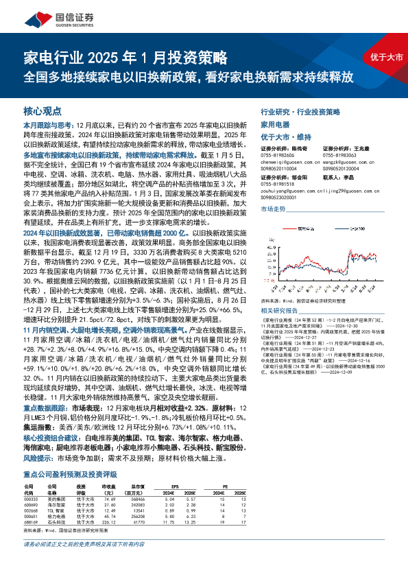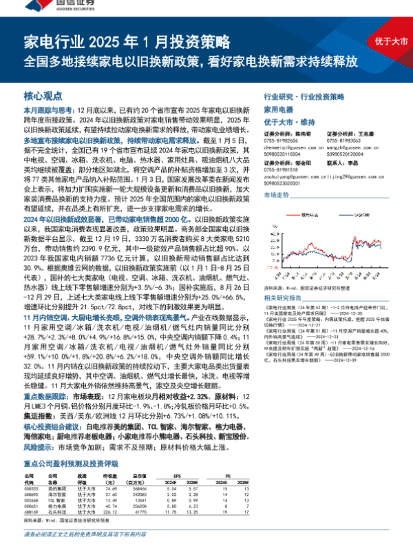 【国信证券】【202501】家电行业2025年1月投资策略:全国多地接续家电以旧换新政策,看好家电换新需求持续释放-15页
