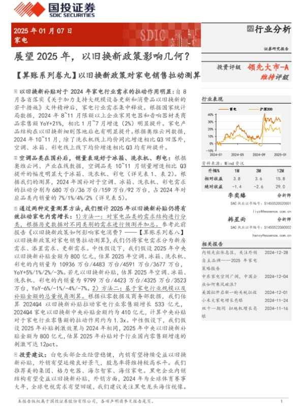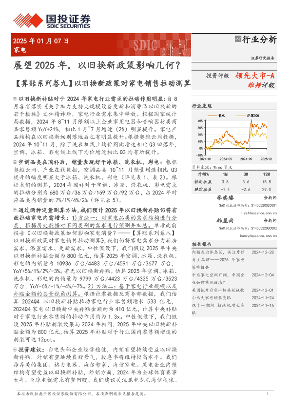 【国投证券】【20250107】家电行业分析:展望2025年,以旧换新政策影响几何?-12页
