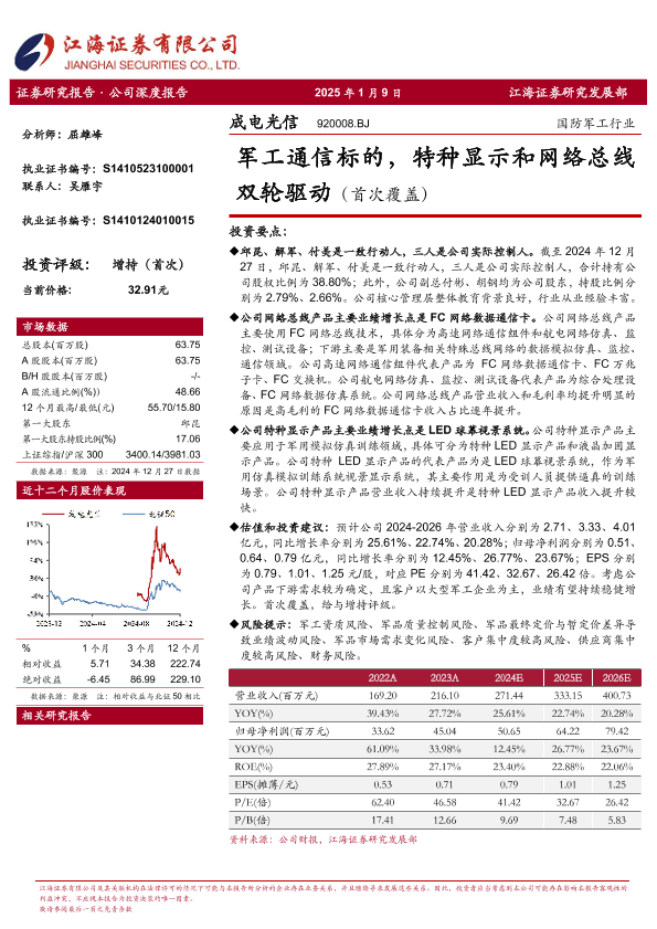 【江海证券】【20250109】成电光信(920008)军工通信标的,特种显示和网络总线双轮驱动-21页