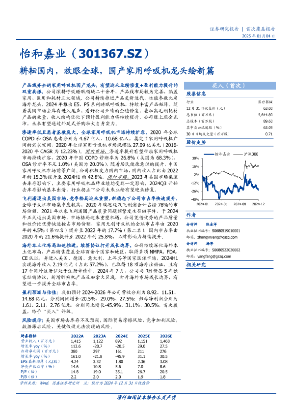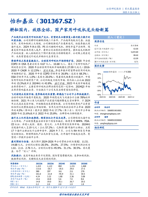 【国盛证券】【20250104】怡和嘉业(301367)耕耘国内,放眼全球,国产家用呼吸机龙头绘新篇-37页