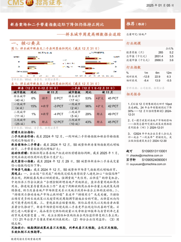 【海通证券】【20250105】房地产行业样本城市周度高频数据全追踪:新房案场和二手带看指数边际下降但仍保持正同比-12页