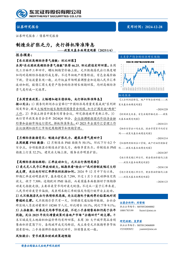 【东北证券】【20241228】政策及基本面观察:制造业扩张乏力,央行择机降准降息-27页