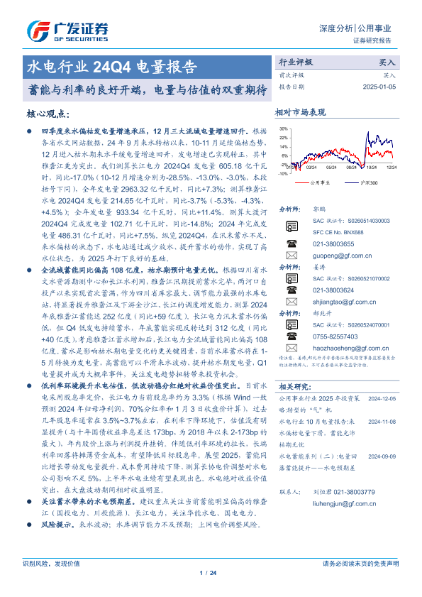 【广发证券】【20250105】水电行业24Q4电量报告:蓄能与利率的良好开端,电量与估值的双重期待-24页