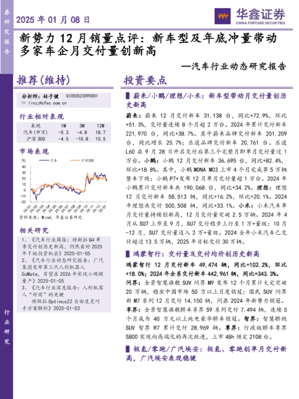 【华鑫证券】【20250108】新势力12月销量点评:新车型及年底冲量带动多家车企月交付量创新高-14页