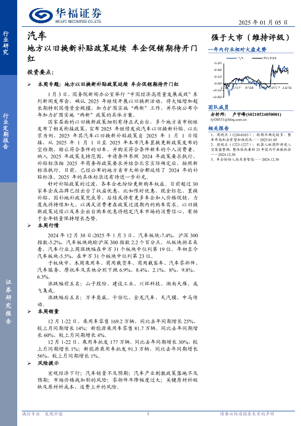 【华福证券】【20250105】汽车行业定期报告:地方以旧换新补贴政策延续,车企促销期待开门红-12页
